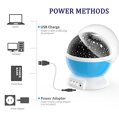 - TRULY PORTABLE -- Built-in rechargeable lithium battery. Just charge it with USB for 4 hours, it will light up your night for 12-24 hours. Compatible with power bank, PC USB port, phone charger.No need for AAA batteries.This newest verison musical projector is ore convenient and safe to use at home or outdoor and even travel use! Take it everywhere!