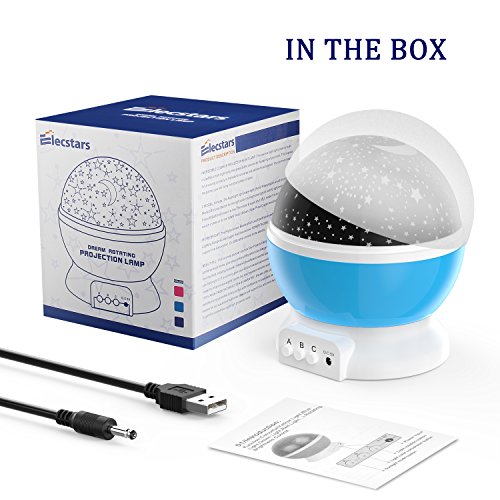 Night Lighting Lamp,Elecstars LED Star Moon Romance and Sky Projector,4 LED Bulbs 9 Light Color Changing With USB Charging Port - Unique Gifts for Children...