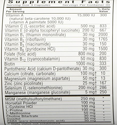 -. Binding : Health and Beauty -. Brand : Blue Bonnet -. EAN : 0743715011083 -. Feature : Contains OptiMSM a pure, superior form of active Sulphur / Available in easy-to-swallow vegetable derived capsules for maximum assimilation/absorption / Truly vegetarian/vegan formula -. IsAdultProduct : 0 -. Label : BlueBonnet -. LegalDisclaimer : *These statements have not been evaluated by the Food and Drug Administration. This product is not intended to diagnose, treat, cure or prevent any disease. -. Manufacturer : BlueBonnet -. Model : 743715011083 -. MPN : 1108 -. NumberOfItems : 1 -. PackageQuantity : 1 -. PartNumber : 1108 -. ProductGroup : Health and Beauty -. ProductTypeName : HEALTH_PERSONAL_CARE -. PublicationDate : 2015-11-19 -. Publisher : BlueBonnet -. ReleaseDate : 2015-11-16 -. Size : 90 -. Studio : BlueBonnet -. Title : BlueBonnet Ultimate Hair and Nail Formula Supplement, 90 Count -. UPC : 743715011083