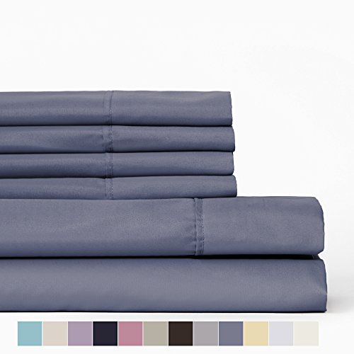 Microfiber Double Brushed 6 Piece Sheet Sets With Deep Pockets & Bonus Pillowcases By Snuggle™ - Wrinkle Resistant, Easy Care,Snuggly Soft™ - Queen, Faded Denim, 6 Piece Solid Set