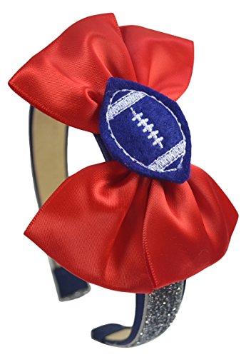 -. Title : Football Fan Satin Bow Arch Headband for Girls (Navy and Silver Glitter Band / Red Bow / Blue Ball)