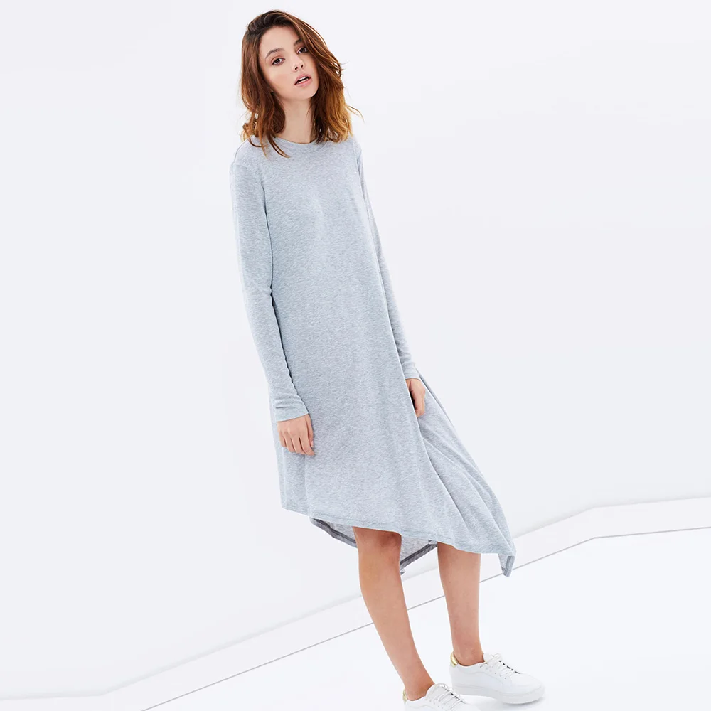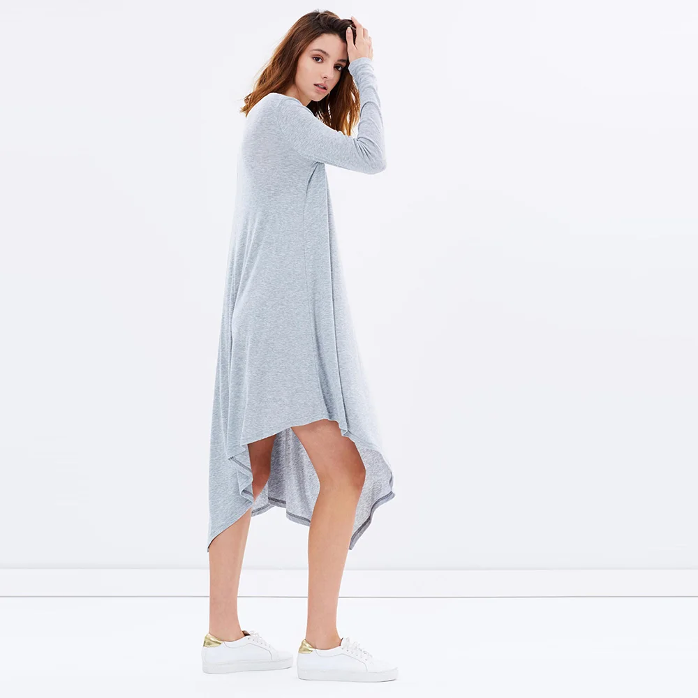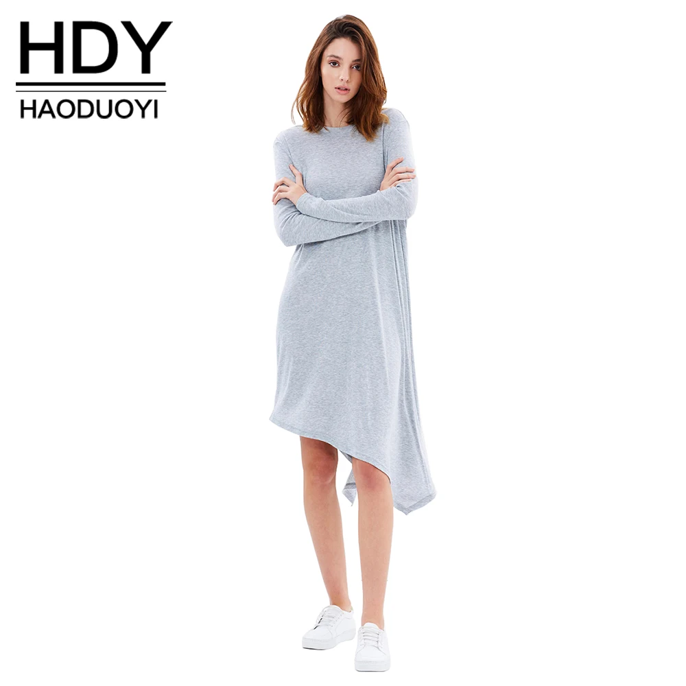 | HDY Haoduoyi Light Gray High Low Women Sexy Midi Dress Autumn Brief O Neck Cotton Loose Dress Street Female Basic Casual Dress | |||||||||||||||||||||||||||||||||||||||