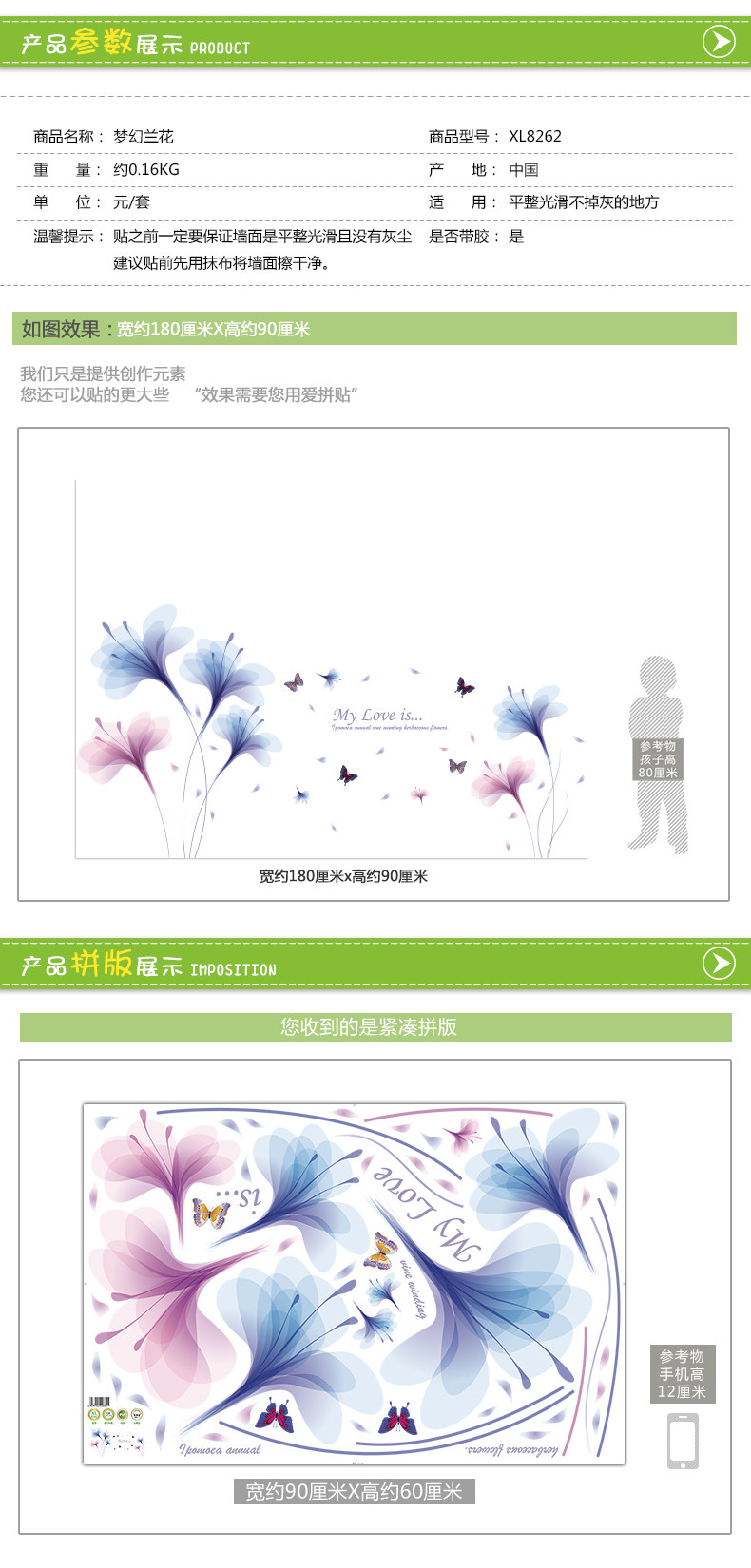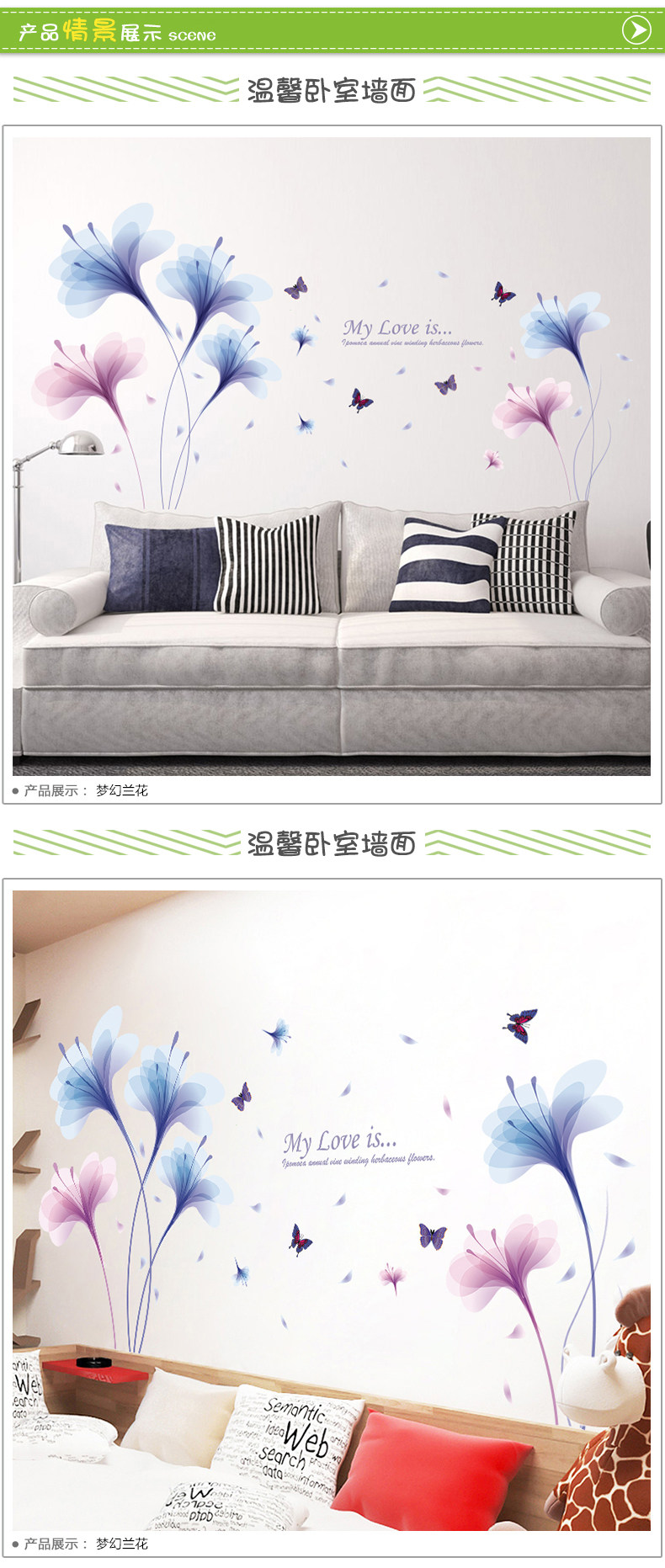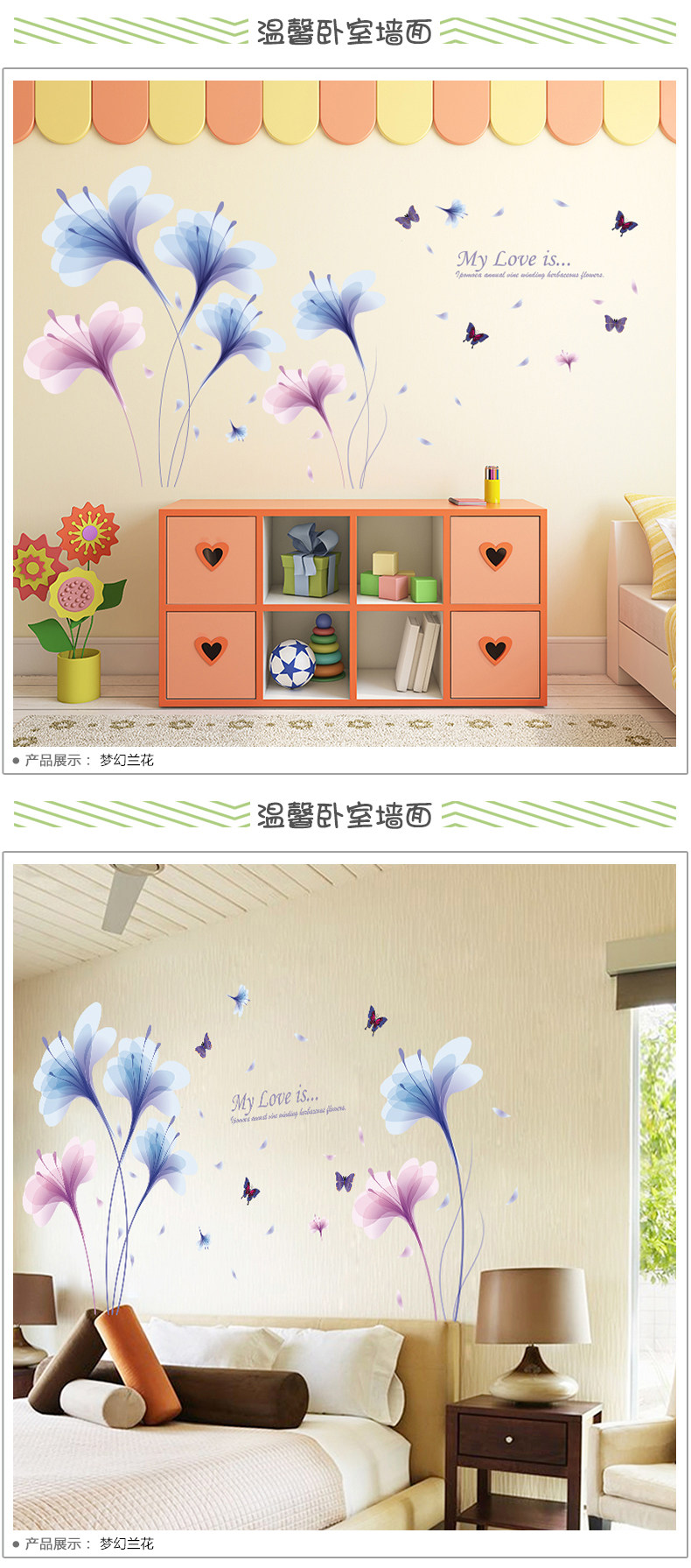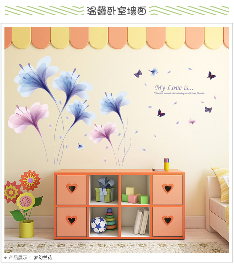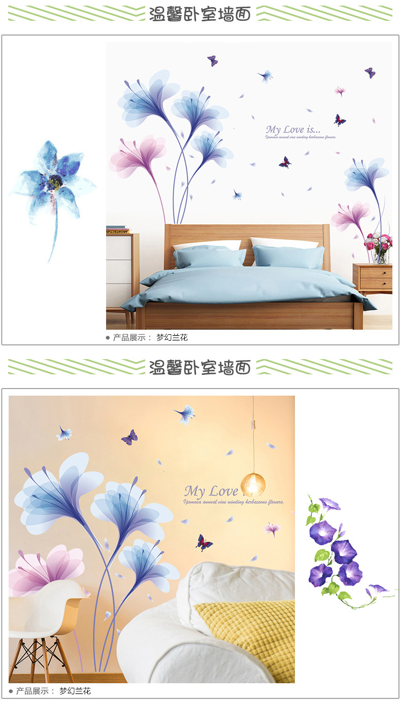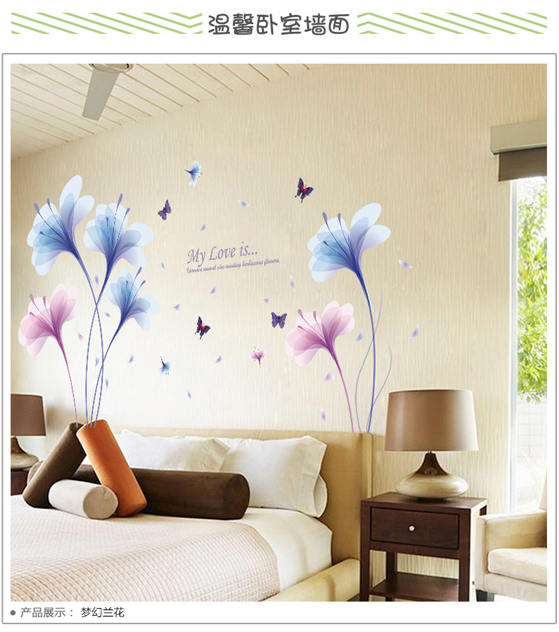 卧室床头温馨兰花墙贴客厅电视背景墙装饰贴纸墙纸贴画自粘可移除