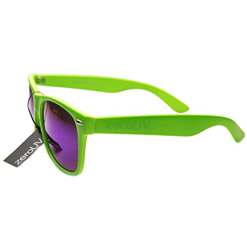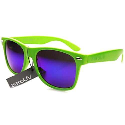 Bright and flashy color version of the timeless classic horn rimmed that features vibrant reflective color lenses. Made with an acetate based frame, metal hinges and color mirror polycarbonate UV protected lenses. Lens Height:43mm Lens Width:52mm Bridge:18mm Frame Total:145mm
