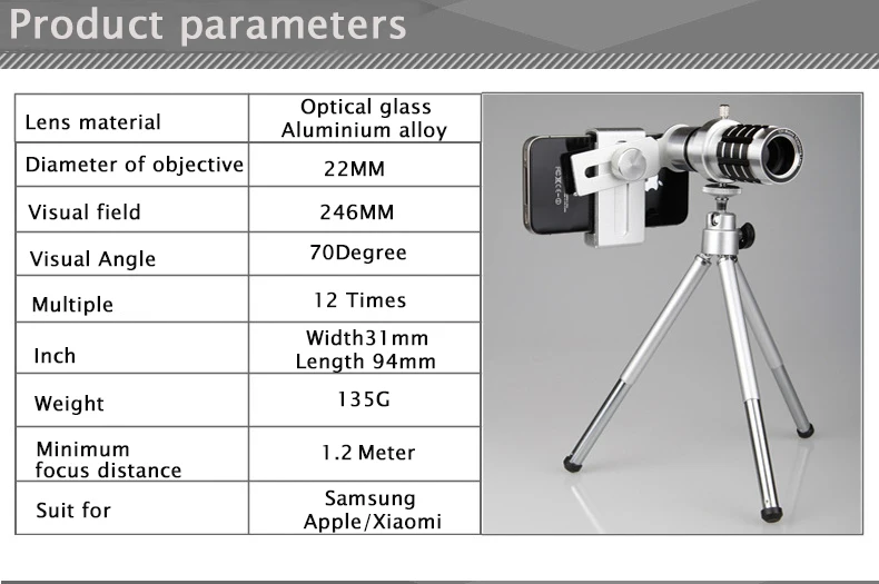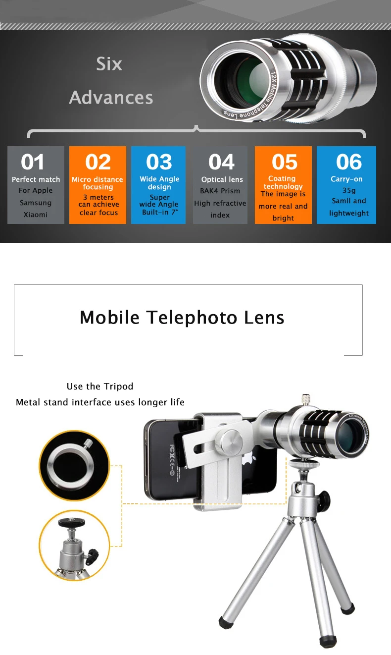 Item Name:12X Zoom Mobile Phone Telescope