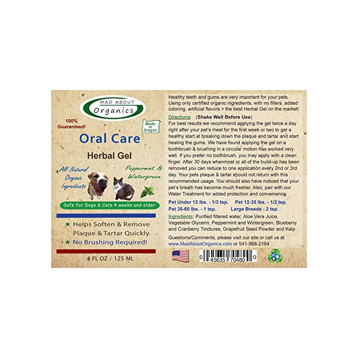 원본상품명:Mad About Organics All Natural Dog Cat Pet Herbal Gel Oral Dental Plaque Remover 4oz by Mad About Or