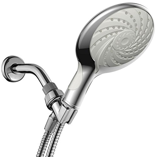 Laguna 5-Setting 6 Inch Hand Held Rainfall Spiral Shower Head with Extra-Long Stretchable Stainless Steel Shower Hose