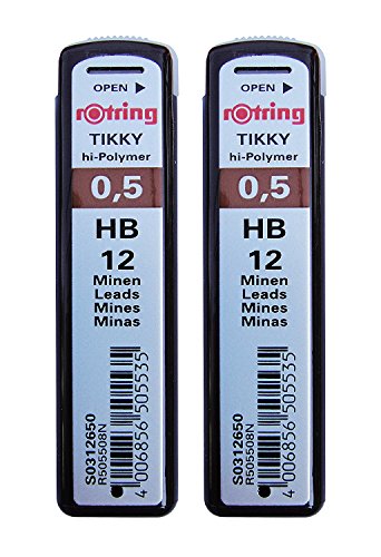 2 Pcs. Rotring Tikky Mechanical Pencil Lead 0.5mm Hb, 12 Lead