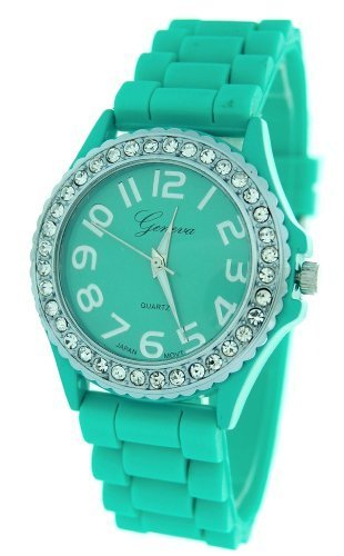 -. Title : Aqua Ceramic Style Silicone Gel Band Crystal Women's Watch