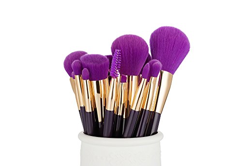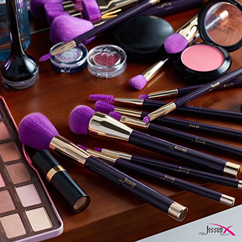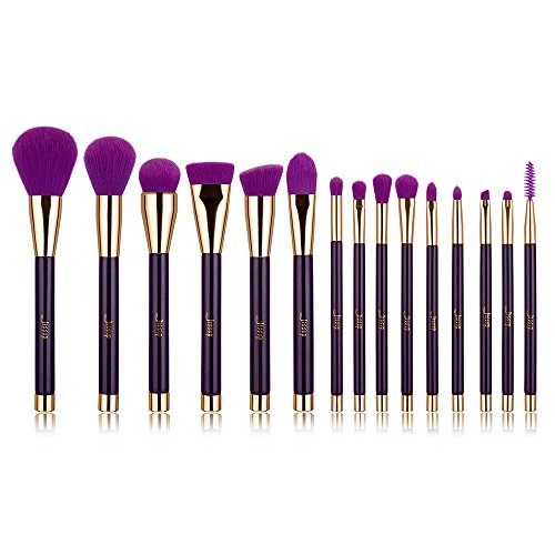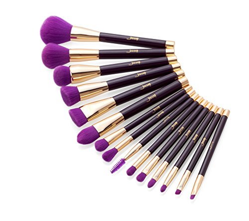Jessup 15pcs Purple/Darkviolet Makeup Brushes Set Powder Foundation Eyeshadow Eyeliner Lip Contour Concealer Smudge Brush Tool T114