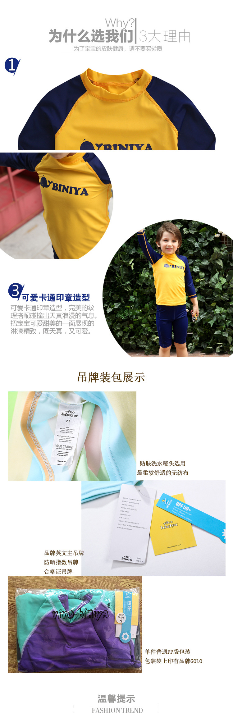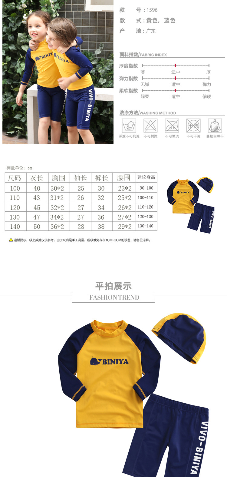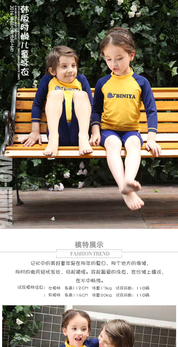 2016新款儿童泳衣速干韩式分体防晒抗UV长袖男童女童宝宝游泳衣