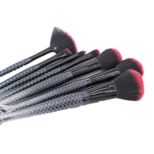 BlueSpace 8pcs Makeup Brushes Black Mermaid Tail Brush Set Cream Contour Powder Concealer Foundation Eyeliner Cosmetic Tool