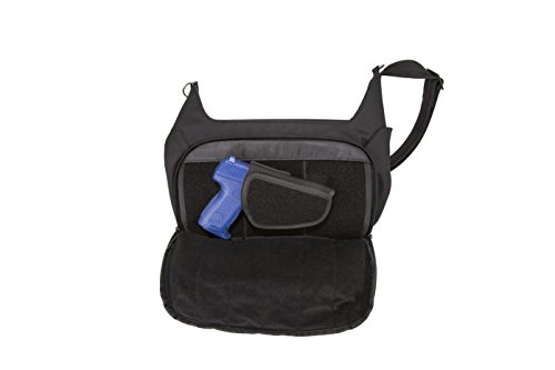 -. Binding : Apparel -. Brand : Travelon -. Department : unisex-adult -. Feature : Front compartment with tamper-secure zippers has left-right reversible gun holster / Gun holster secures to rigid back wall of compartment for secure draw / Designated pockets for pepper spray and a knife for layered protection / Main compartment has rfid protected card and passport pockets; padded and fleece lined pocket for iPad or tablet / 13x4.5x8 -. Label : Travelon -. Manufacturer : Travelon -. Model : 43052-500 -. NumberOfItems : 1 -. PackageQuantity : 1 -. ProductGroup : Apparel -. ProductTypeName : LAGE -. Publisher : Travelon -. Studio : Travelon -. Title : Travelon Anti-Theft Concealed Carry Hobo Messenger Bag