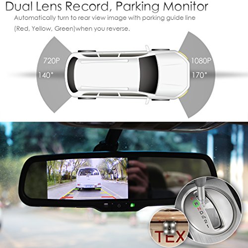 ☀Parking Assistace System: This rear view mirror dash camera for car help you more easy and safe when you paking, when you push to reverse gear (R), the mirror will switch to backup camera image with parking guide line