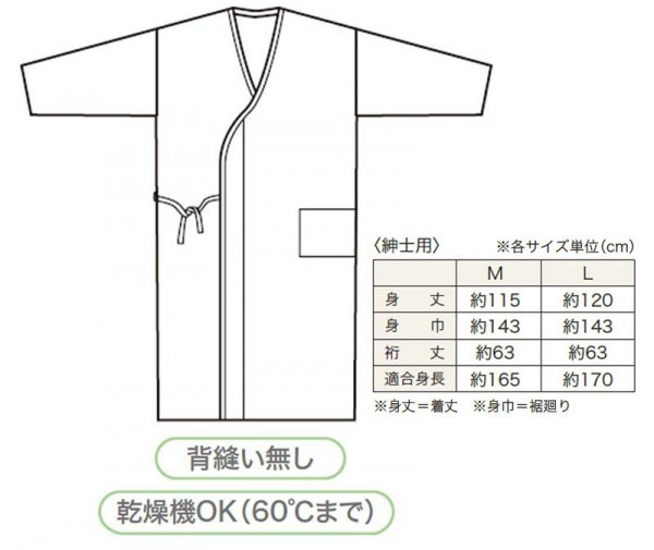 通常、一般的に市販されている多種多様な寝巻きでは、着用時に背中の背骨部分に沿う形で左生地と右生地とを合わせるための重なり(縫い目)が上端から下端にかけて存在します。 これは和装の基本的構造=左と右の生地を縫い合わせて1枚の寝巻きに仕上げる構造によります。 しかしこちらの商品は「介護用寝巻き」として利用していただく事を想定し、褥瘡防止(じょくそう=床ずれ)の観点から、この背骨に沿うように存在している重なり(縫い目)が有りません。 一般的な寝巻きでは背骨付近に床ずれ、褥瘡が発生してお困りの方、褥瘡予防としてのお寝巻きをお探しの方に。