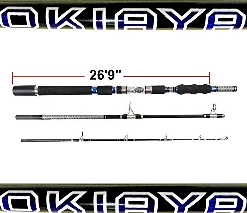 Studio : OKIAYA Publisher : OKIAYA Binding : Misc. Product Description Portable Carbon Fiber saltwater spinning rod or boat rod, suitable for saltwater fishing. Cold forged aluminum alloy reel seat with corrosion resistant stainless steel hoods. Enhanced sensitivity of graphite and carbon fiber, make this powerful, versatile, and flexible; High density EVA gives greater sensitivity and durability Stainless steel guides with ceramic inserts; Nice rod bag 3-piece design make it easy to carry. Great for caring on planes. 0