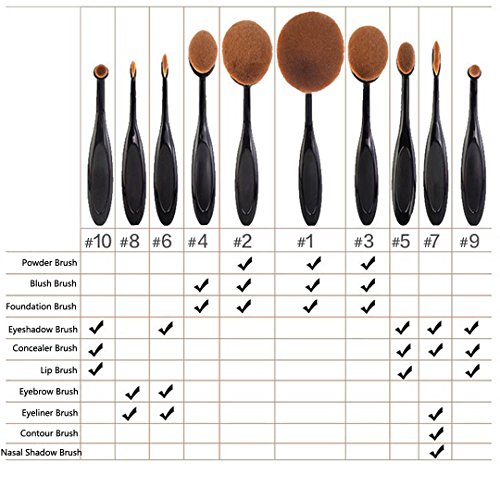 V-noah 6 Pcs Oval Makeup Brush Set Professional Foundation Contour Blush Concealer Eyebrow Eyeliner Blending Cosmetics Brushes Toothbrush...