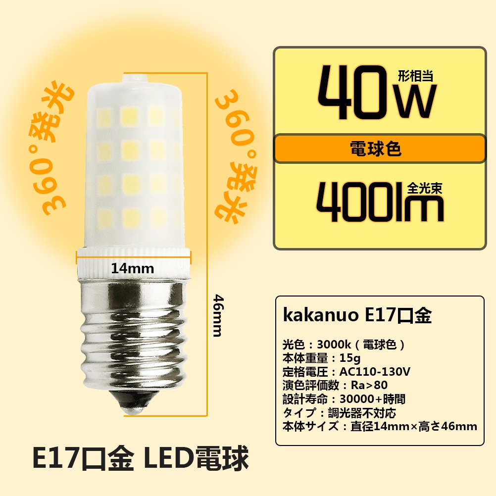 It is equivalent to a light bulb, and consumes less electricity than a general E 17 bulb, which saves electricity bills.