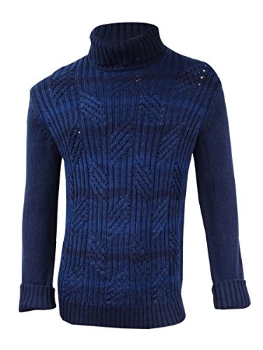 Product DescriptionThis cotton acrylic blend turtleneck sweater features an ombre striped cable knit design with contrasting front panel.0