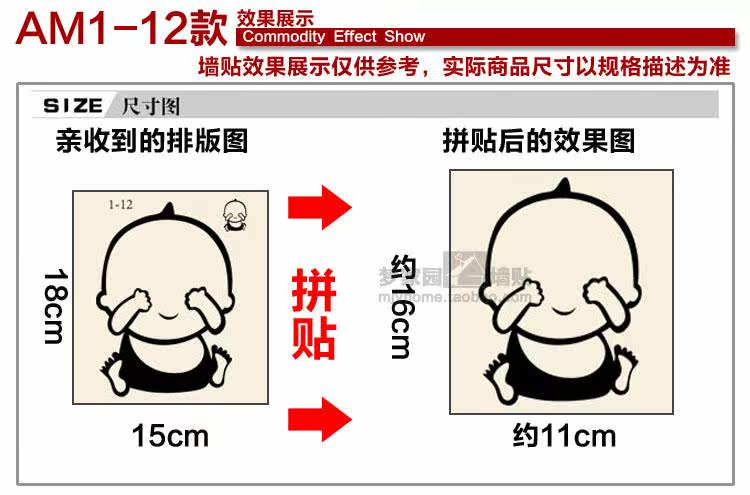 Sizes, "you receive the goods and typesetting" size and "collage after size reference"
