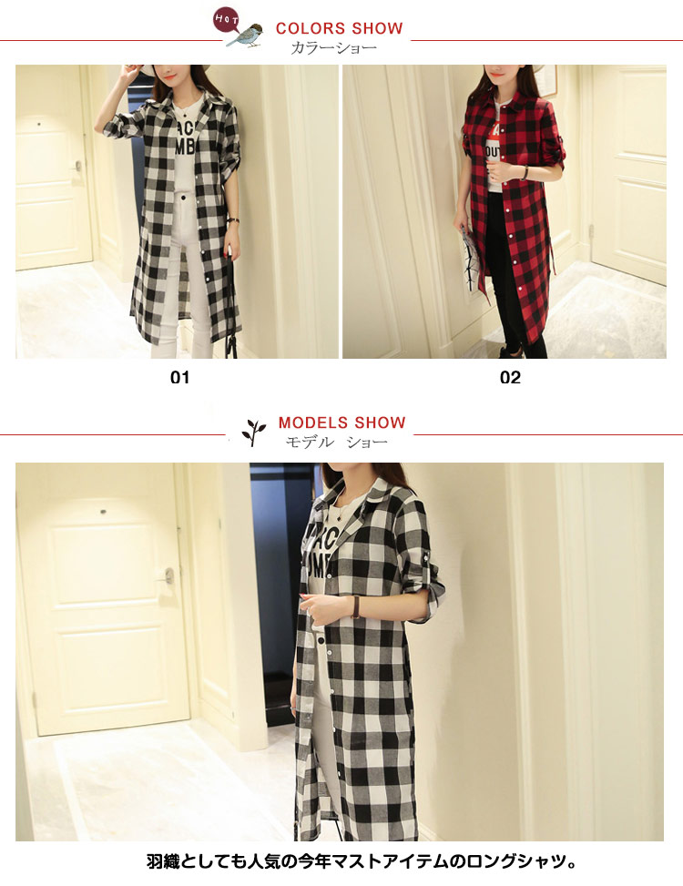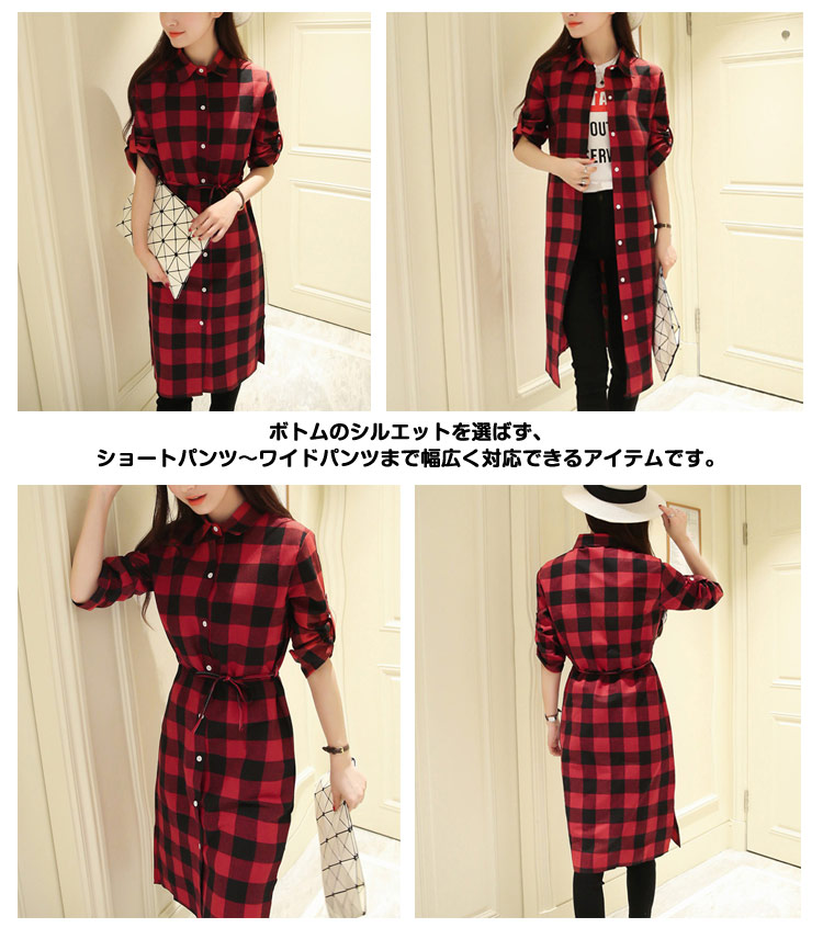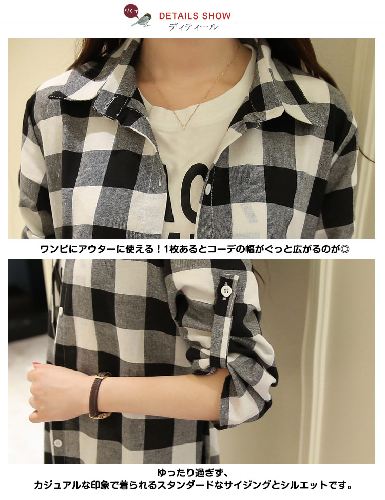 | チェック柄でスタイリングのしやすさと大人っぽい雰囲気がポイントのロングシャツ。羽織としても人気の今年マストアイテムのロングシャツ。動きやすさとこなれた印象を演出してくれるゆったりデザイン。ボトムのシルエットを選ばず、ショートパンツ?ワイドパンツまで幅広く対応できるアイテムです。 | |