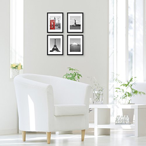 4pcs Picture Frames 11x14 inchesPackage includes:4 x black wood frames, 8 x mats, 4 x printed photo, protective packing, wall mounting material.