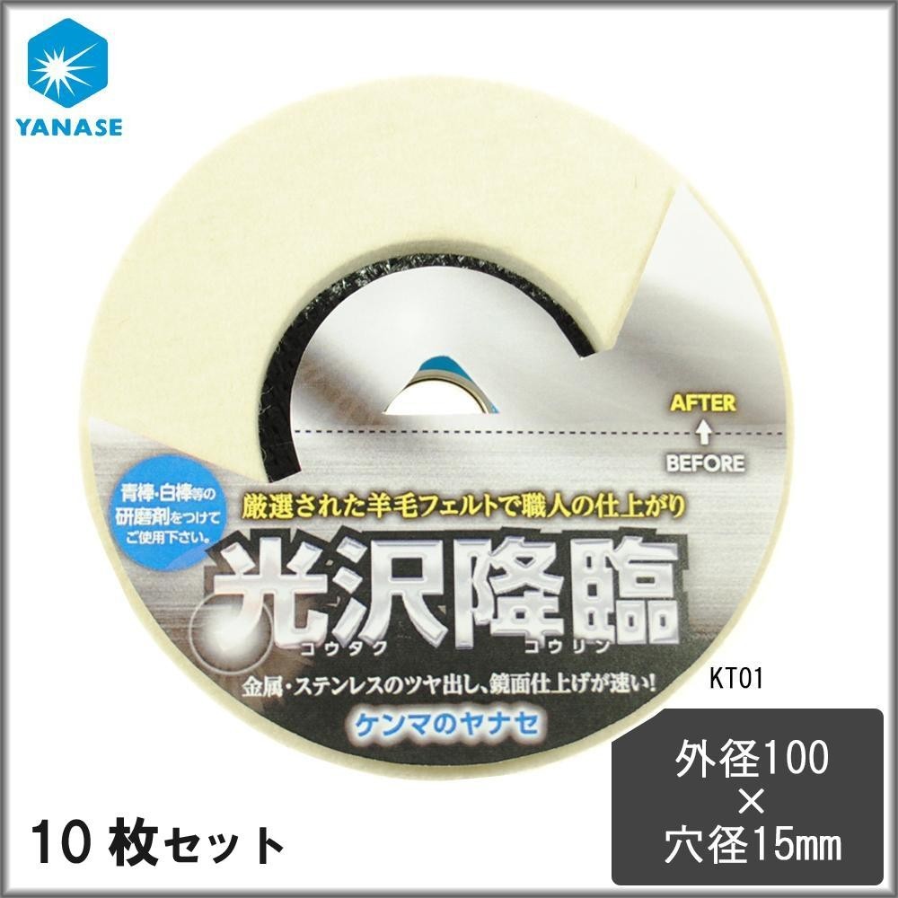 厳選された羊毛フェルトで職人の仕上がりに。金属・ステンレスのツヤだし、鏡面仕上げが速く出来ます!! 製造国:中国 素材・材質:羊毛 商品サイズ:外径100×穴径15mm 仕様:最高回転数:13000min-1(rpm)適用機種:Φ100グラインダー セット内容:10枚セット ※サプライヤー直送品 ご注文後、当日~1営業日後の出荷となります【商品名】ケンマのヤナセ 光沢降臨 外径100×穴径15mm KT01 10枚セット