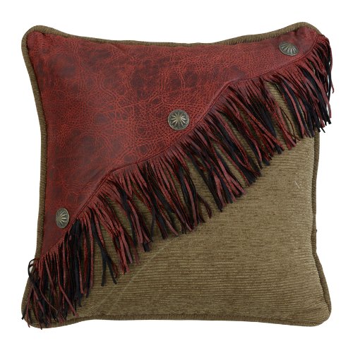 HiEnd Accents San Angelo Western Leather Fringe Pillow, Red