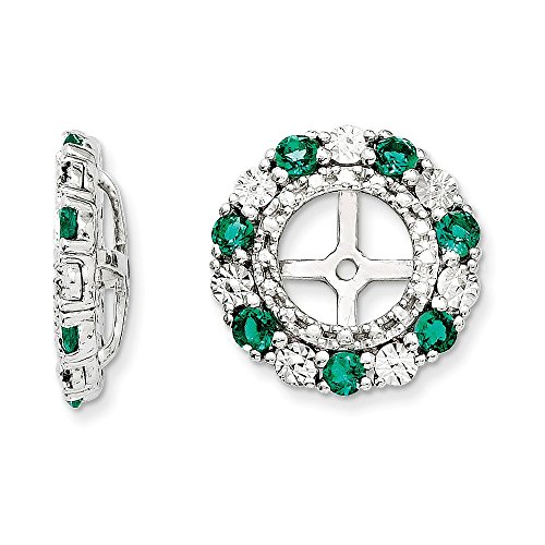 Solid 925 Sterling Silver Simulated Emerald Earring Jacket (13mm x 13mm)