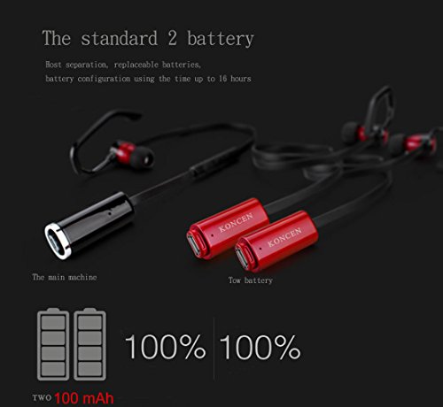 -. Binding : Wireless Phone Accessory -. Brand : Koncen -. Feature : Easy Access: The simple user interface on one of the earphones allows you adjust the volume, play/pause, select songs and answer/hang up calls completely effortlessly. / Music Bluetooth new subversion: Sports-style music Bluetooth V4.1 headset with the replaceable battery Double configuration capacity and the lasting music time reaches 16 hours / Special noise reduction and give you a HD calling experience / Clear and convenient communication: Voice telegraphing and acoustic answering. without manual operation.Say "YES" or "NO" answer decline a call / KONCEN headsets are can quickly connect two different mobile devices within the effective range. -. Label : Koncen -. Manufacturer : Koncen -. PackageQuantity : 1 -. ProductGroup : Wireless -. ProductTypeName : WIRELESS_ACCESSORY -. Publisher : Koncen -. Studio : Koncen -. Title : Bluetooth Headphones, KONCEN X17 Bluetooth Wireless Headsets Noise Cancelling Headphones can replace the battery, In-ear Stereo Earbuds Earphones With Mic for iPhone iPad iPod and Smartphones