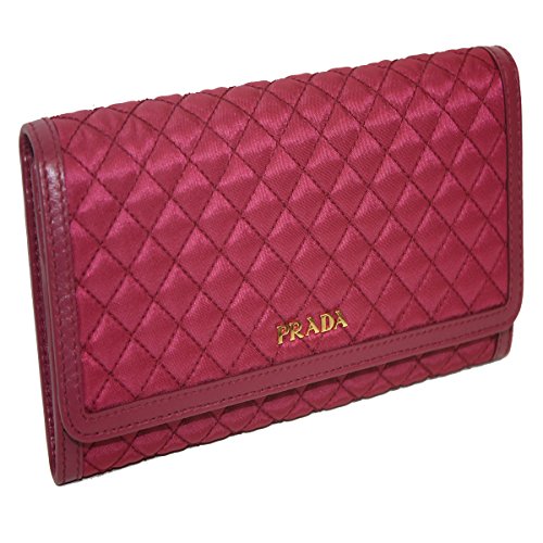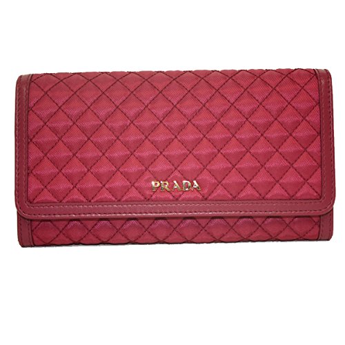 -. Feature : Tessuto Quilted Nylon Continental Flap Wallet 1M1132, Pink / Model Number: 1M1132 / Material: Quilted nylon and leather / Snap closure / Includes all authenticity cards and dust bag