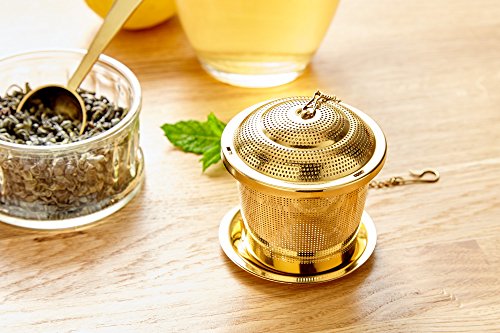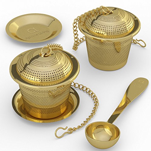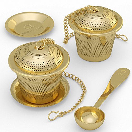Studio : Apace Living Publisher : Apace Living Product Description ADVANCED TECHNOLOGY ULTRA FINE STAINLESS STEEL TEA INFUSER SET BY APACE LIVING Universally useful, with a large capacity, this unrivaled tea system is capable of brewing the perfect assortment of ice, warm tea, specialty blends or traditional tea including black, white, organic, ginger, chai, jasmine, oolong, herbal and other herb teas, peppermint, flower, gunpowder, Darjeeling, green tea, decaf, detox, fruit teas, Japanese / English / Chinese teas and more. 3 BEAUTIFUL FINISHES TO ELEVATE YOUR DECOR It doesn't matter which of the three high quality, tea strainer brewer kits you choose, you can rest assured that every single piece - the tea ball, tea spoon scoop and drip tray saucers are engineered from the FINEST modern, 304?Grade?Stainless Steel (SS304) - rivaling cheap tea balls and tea bags in every area - durability, aroma and flavor. And because they add elegance to any decor, you'll happily find they're a wonderful addition to any kitchen ware collection, teaware, whistling kettle, jars, tea tumbler, canister, portable tea container, tea net or tea accessories you already own! UNQUESTIONABLE VALUE - MAKE A TINY CUP OR AN ENTIRE LARGE CAPACITY POT! Reusable metal sieve with filter does more than save you money and time. It's 'perfectly sized' capacity allows you to enjoy a single cup, brew for you and a friend, or satisfy an entire party of tea-loving guests. And unlike vintage plastic or silicone tea brewing sets, or fragile ceramic or glass pots, our LOCKING silver tea infusers deliver an exotic, whole flavored gourmet brew exactly how you like it 0