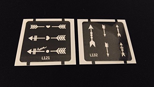 Product Description2pc Love / Arrows GLITTER TATTOO STENCIL SET For Henna Airbrush Facepaint0