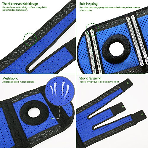 -. Feature : WHY CHOOSING TINTEC: Our self-adjustable support will greatly protect your knee-joint from sprain, acute or chronic knee pain from arthritis, and accelerate internal circulation while reducing stress. / FOR THE INJURY RECOVERY: The built-in sP.R.Ings could absorb most pressure and the special 3 bevel straps could adjust the movement of your knee-joint ,thus will reduce the swelling and relax your injured area in all-day support. / EXTRA SLEEVE PROTECTION: Sleeve can offer additional protection to skin, muscle tendons, bones and draw away excessive perspiration from the skin. / BREATHABLE MATERIAL: Breathable material will make it comfortable even when exercising in summer, keeping your skin clean and dry. / COMFORTABLE TO WEAR: Our knee support accommodates a wide range of users, suitable for men&women, fits both left&right leg and large range applications for walking, jogging, exercise, football, basketball, wrestling, gym, dance, running, weight lifting etc.