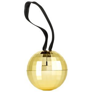 - A mirror ball-shaped ornament with lip gloss in a universal pink shade.