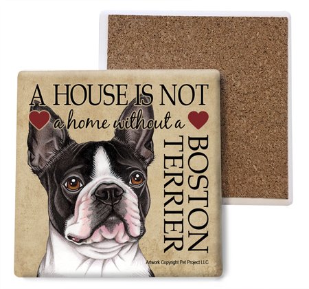 (SJT24713) Boston Terrier Absorbent Stone Coasters, Set of 4