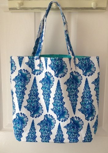 -. Title : Lilly Pulitzer for Estee Lauder Canvas Beach (Blue Seashell) Tote Bag