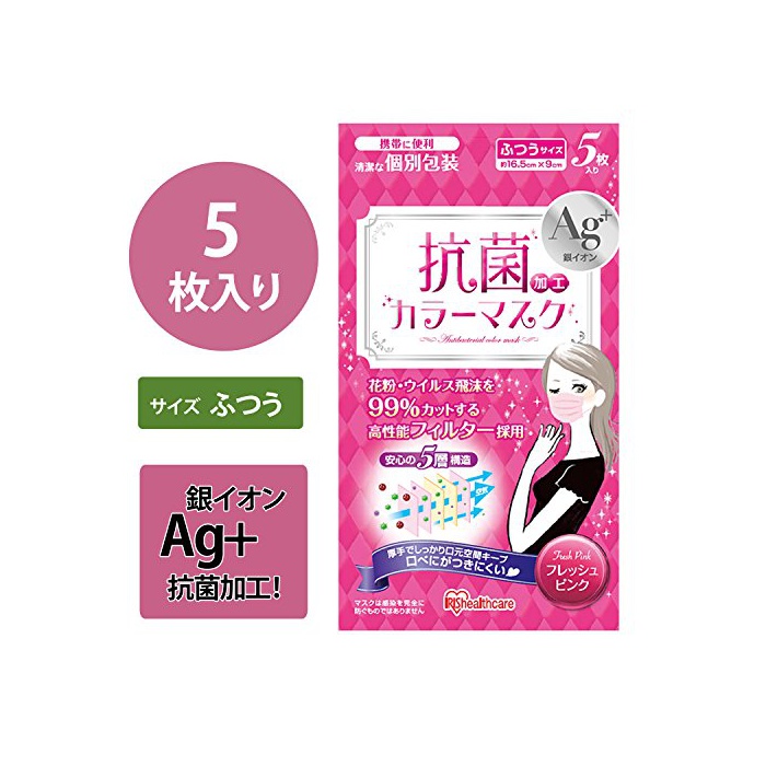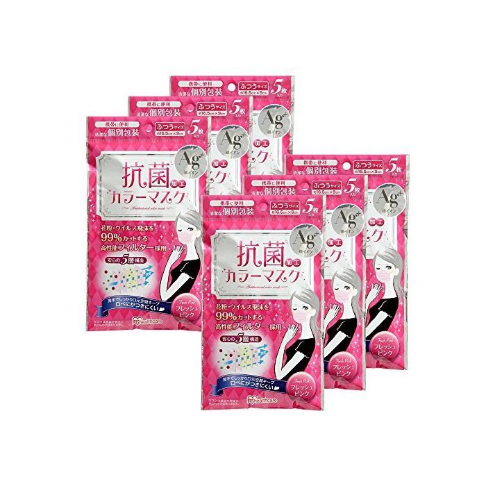 원본상품명: アイリスオ?ヤマ マスク カラ?マスク 抗菌 ピンク ふつう 5枚入り 個包? 【6個セット】 NCK-5PM