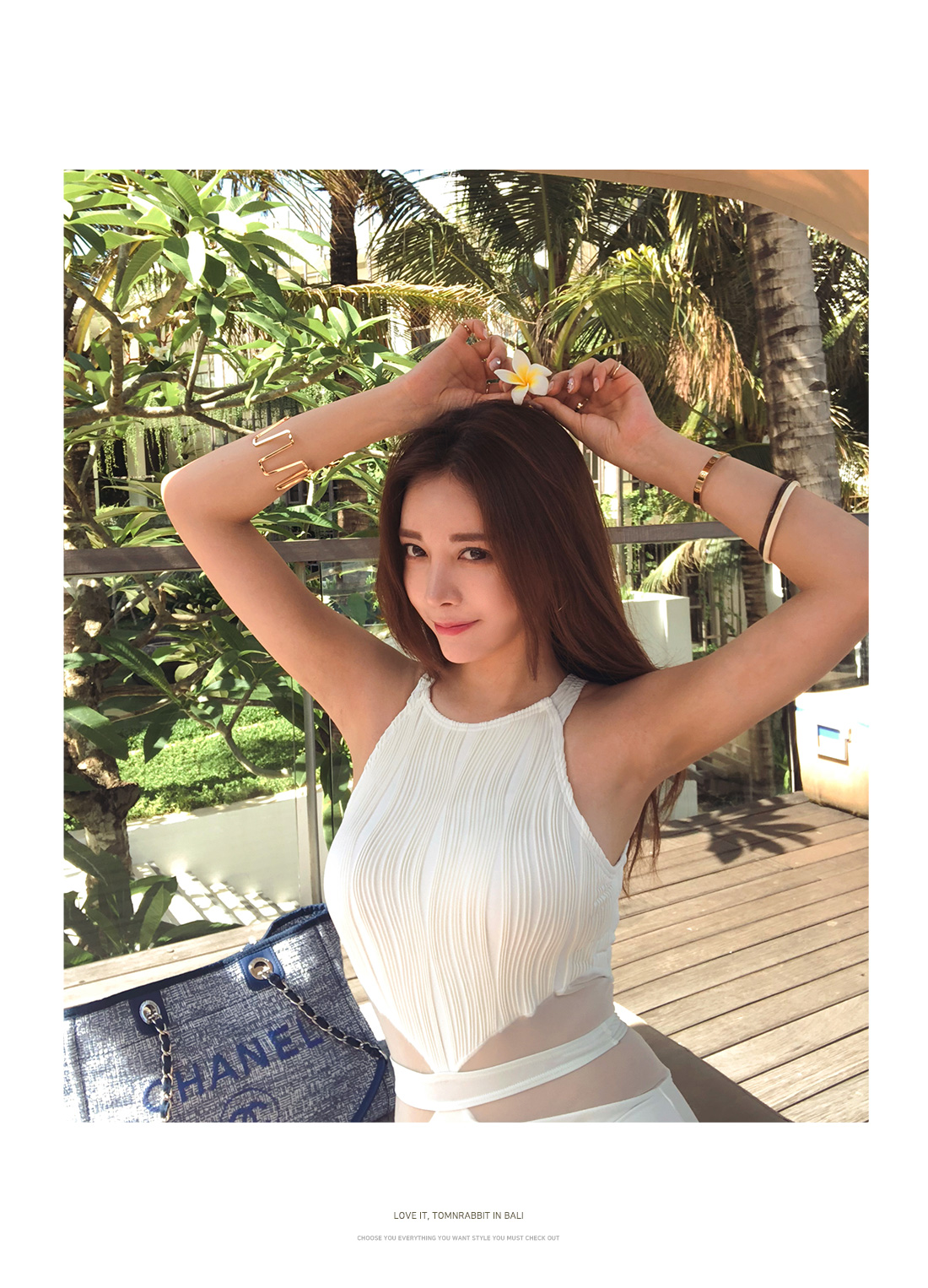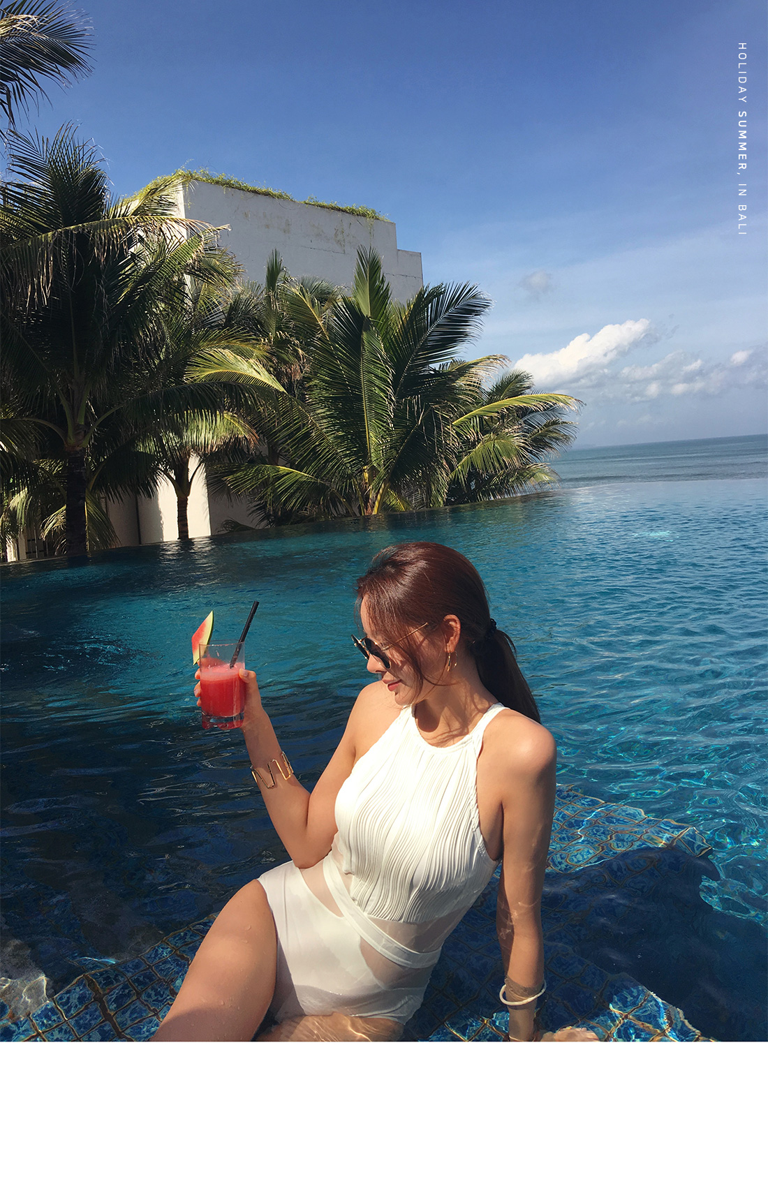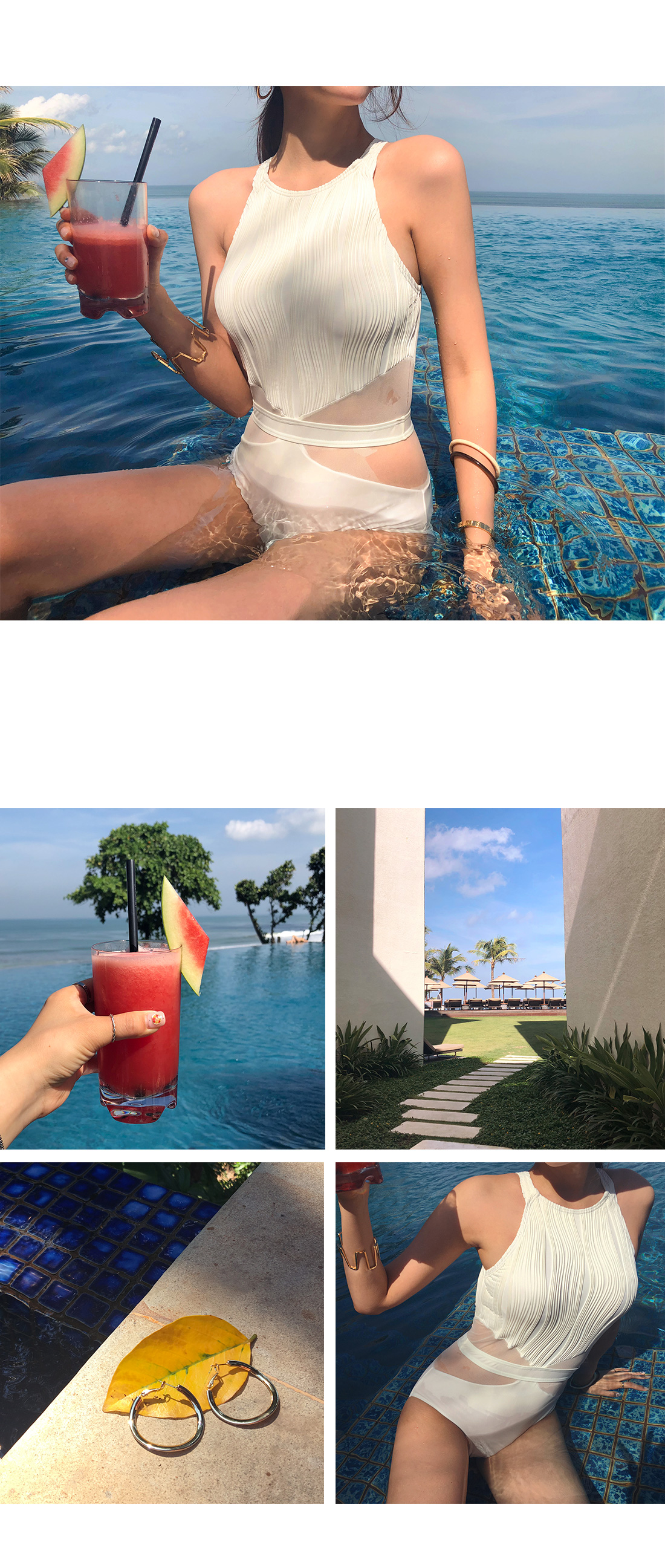 MD COMMENT 세련되면서도 시크한 무드의 홀터넥 모노키니를 소개합니다.사이드 라인에 시스루 디자인으로입었을때 더욱 매력적이며시크하고 세련된 무드의 디자인의비키니 아이템이에요.뒷면에 후크 디테일로 오픈, 클로징을 도와주며노와이어 디자인으로 편하게 입기 좋답니다.볼륨패드가 함께 구성되어 더욱 볼륨감있는바스트 라인으로 연출이 되며패드홀이 함께 구성되어 추가로 더 넣을 수 있어요.바스트 부분은 입체감 있는 주름 원단으로 유니크한 매력을 더했으며바디 라인을 날씬하고 예쁘게 연출해준답니다.F 사이즈로 제작되었으며상세 사이즈표를 참고하여 주세요.소재의 특성상 다른제품들과의 이염이 발생 할 수 있으니반드시 찬물로 단독세탁 해주시고물놀이 후 다른 젖은 제품들과 함께 보관하지 말아주세요.*비키니 상품은 소재와 위생상의 문제로 교환, 반품이 불가하며,주문 전 충분한 상담 후 신중한 구매 부탁드려요^^COLOR/SIZE 아이보리,블랙FREEMODEL FITTING 아이보리/FREE