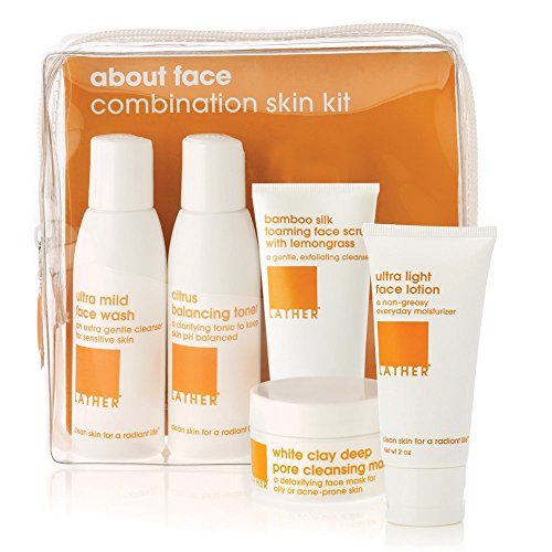 LATHER About Face Combination Skin Care Kit – travel friendly skin care kit contains everything needed to banish dirt and oil while hydrating where you need it, leaving skin in optimum balance