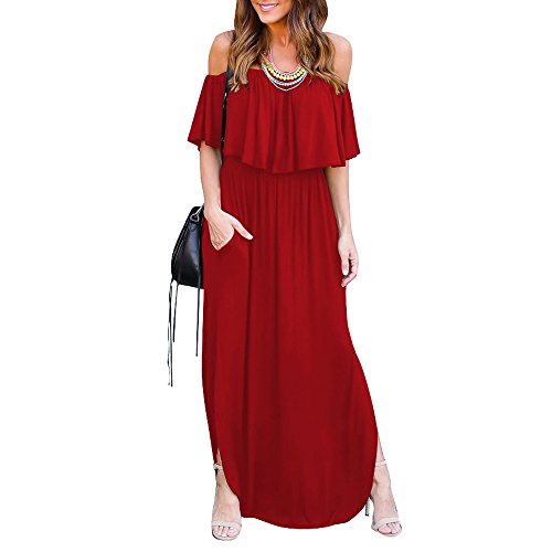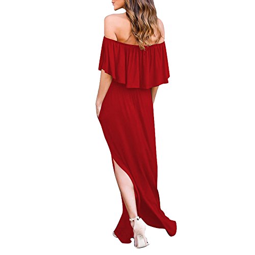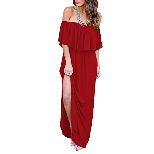 Women Plus Size Short Sleeve Ruffles Split Beach Floor-Length Sundress Red XL