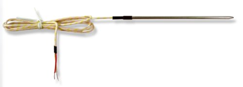 The Cooper-Atkins 2020K type-K thermocouple air and surface 4.75" probe measures temperature from -100 to 1,000 degrees F (-73 to 538 degrees C). This probe is for use with the Cooper-Atkins PM400K or other panel-mounted thermocouple thermometer with screw terminals (both sold separately). It has a response time of 30 seconds in liquid for accurate readings. The 42" cable with pigtail leads has a fiberglass outer jacket for heat resistance and withstands temperatures up to 900 degrees F (482 degrees C). A type-K thermocouple probe is for use in applications with a broad range of temperatures, including furnaces, kilns, freezers, and other industrial applications.