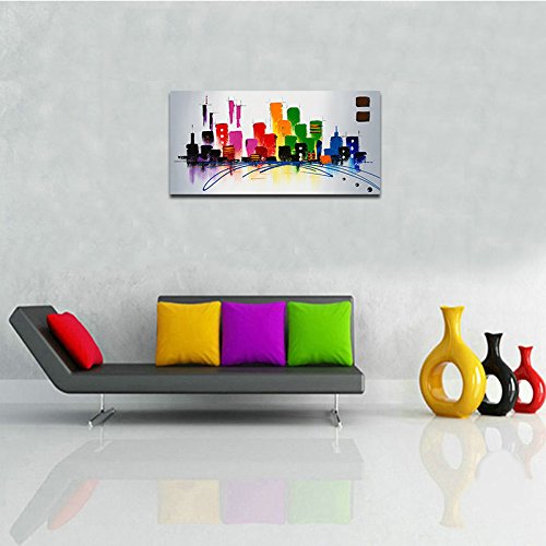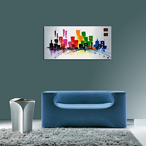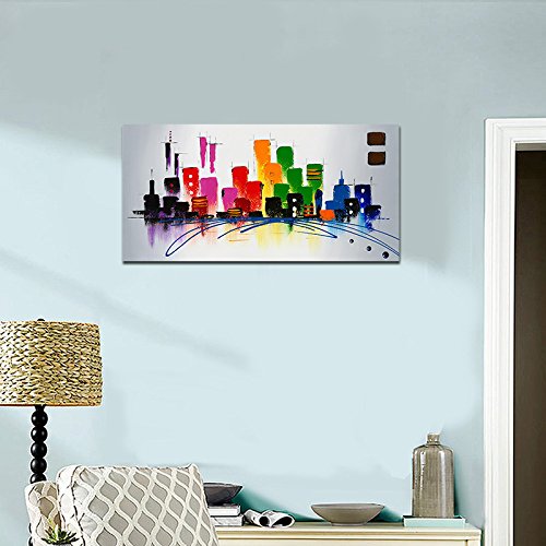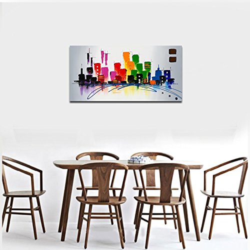 -. Binding : Kitchen -. Brand : Wieco Art -. Feature : 100% hand-painted high quality oil paintings by professional artist. / Stretched and framed, ready to hang. Edges are painted and surface is covered with clear removable film to protect the painting. / Each piece is custom made. Actual painting may be slightly different from the product image. / Packed in Carton Box. -. Label : Wieco Art -. Manufacturer : Wieco Art -. MPN : AB1078_P -. PartNumber : AB1078_P -. ProductGroup : Home -. ProductTypeName : HOME -. Publisher : Wieco Art -. Studio : Wieco Art -. Title : Wieco Art - CitySpace Large Color City 100% Hand-painted Modern Canvas Wall Art Abstract Oil Paintings on Canvas Modern Canvas Art
