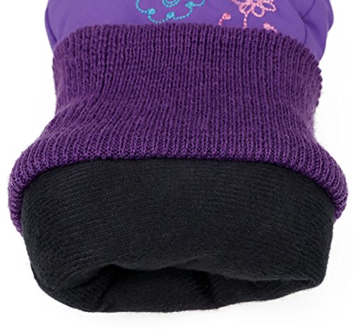 Measure kids' hands and match to the ranges below: Toddler(1-2 years): under 4.3" from bottom of palm to fingertips, glove length 7" with 2.25" woven cuff XS (2-3 years):under 4.75" from bottom of palm to fingertips, glove length 7", with2.25" woven cuff S (4-6 years): under 5" from bottom of palm to fingertips, glove length7.75" with 2.25" woven cuff M (7-9 years): under 5.25"from bottom of palm to fingertips, glove length8.25" with 2.25" woven cuff L (10-12 years): under 5.5"from bottom of palm to fingertips, glove length8.75" with 2.25" woven cuff