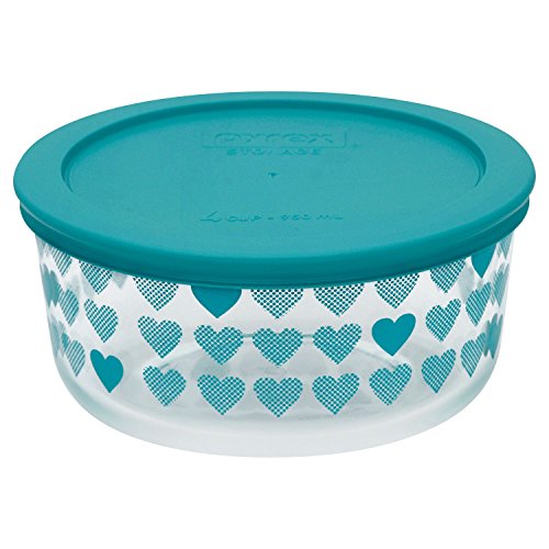 Pyrex Simply Store 4 Cup Turquoise Hearts Storage Bowl with Lid