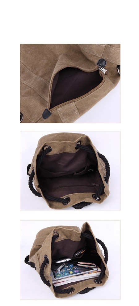 メイン素材: キャンバス【サイズ】 大:高さ約42cm×幅約25cm×厚さ約25cm【素材】キャンバス地・コットン・ポリエステル【重さ】大/0.85kg 【ポケットの数】大/4(外側×1、内側×3)※大/小仕様の主な相違点: (1)バッグサイズ、 (2)背負うベルトにファスナー付け有無(大:なし、小:あり)、 (3)内側のポケット数(大:3つ、小:1つ)※バッグ以外のモノはすべて商品に含まれていません。