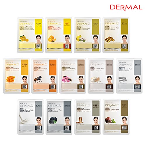 (Dermal)/Scrubs/Body Treatments/Body Mud/DIRECT FROM USA/Dermal Korea Collagen Essence Full Face Facial Mask Sheet 13 Yellow Combo Pack - Skin Nourishing