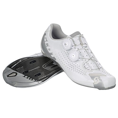 Studio : Scott Publisher : Scott Binding : Misc. Product Description Made with elite, racing-oriented female riders in mind, the SCOTT Road RC Lady shoe is primed for pure speed. It features a hi-gloss asymmetric asymmetric welded microfiber mesh conforming upper. The shoe offers a dual-zone Boa IP1 lacing system, allowing on-the-fly adjustability in two separate segments. For optimal sole support, the ErgoLogic insole features an adjustable arch support and metatarsal button. The stiff HMX Carbon fiber sole has a stiffness index of 10 (our stiffest, for pure efficiency). 0