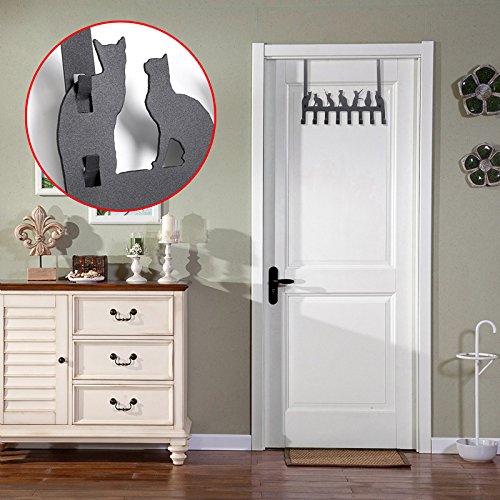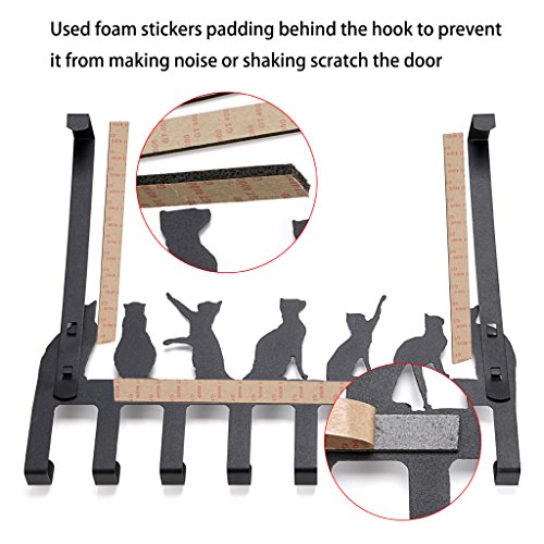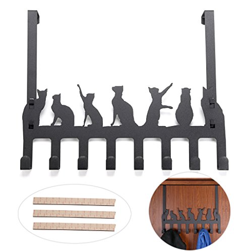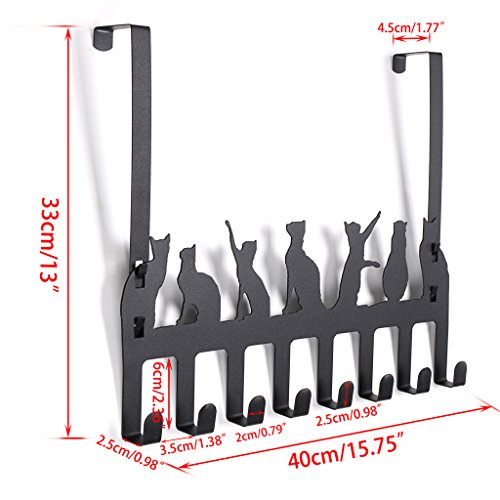 Sumnacon Decorative Over The Door Hooks, Removable Coat Rack Utility Hook With 8 Hooks For Hanging Towel Hat Bag Clothes Fit Up To 1.77" Thickness Door (Cat, Black)