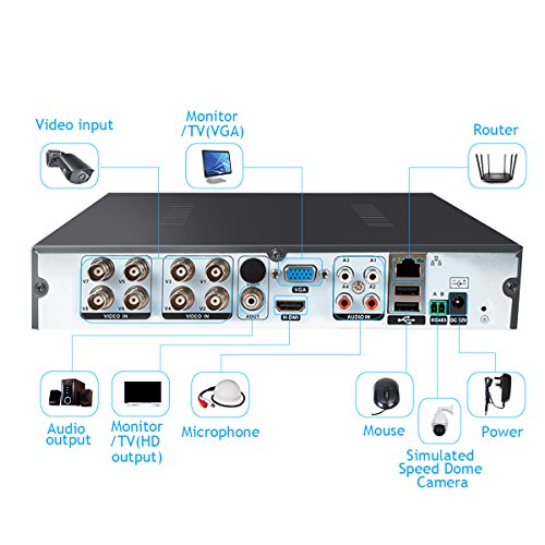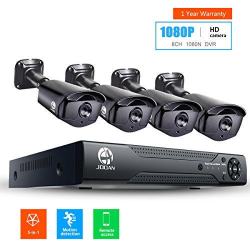 JOOAN 2MP AHD Security Camera System 4 X 1080P Weatherproof AHD Camera with 3.6mm Lens And 1080N 8CH DVR Recorder Support AHD/TVI/CVBS- No Hard Drive